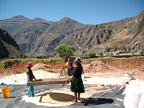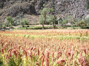 ペルーの首都リマから空路で約2時間、リマの南東に位置するアレキバの町に到着です。アマランサスの故郷は、ここから路線バスで約10時間のコタワシの町です。この町は標高が約2,300mに位置しています。この町の周囲の農家さん達が有機アマランサスを栽培しています。